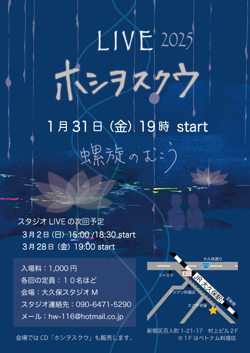 初めてお会いする演者さんが揃った「Round cafeさん」での長丁場ライブでした。企画から当日の采配までを細やかに手がけてくださった後藤勇さん、有難うございました。そして、すてきな空間を提供してくださったラウンドカフェの店主さん、お立ち寄りくださった常連の皆さん、ご一緒くださった演奏家の皆さん、ありがとうございました。
